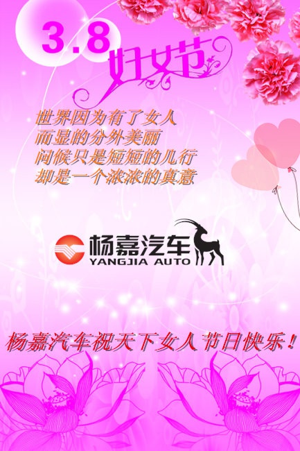 楊嘉集團在“三八”國際勞動婦女節到來之際,向公司全體女工作人員,社會各界婦女,致以節日的祝賀和美好的祝福。
