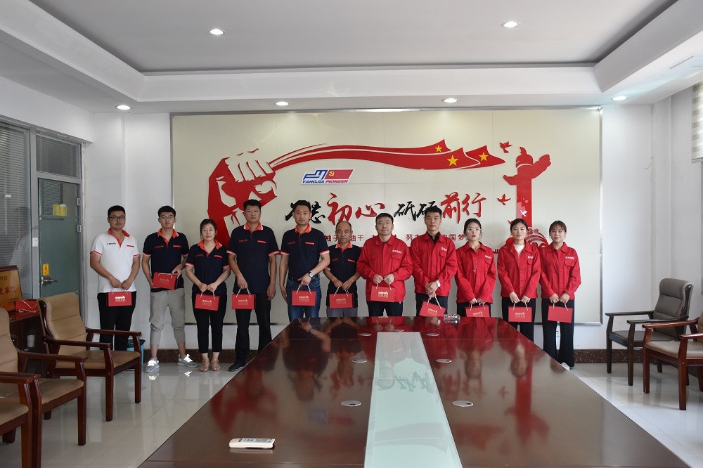為慶祝中國共產黨成立98周 年,今天上午,山東楊嘉汽車制造有限公司組織公司黨員、入黨積極分子在公司黨員活動室召開會議。會議由支部書記楊奉國介紹了公司黨組織發展情況,黨員及入 黨積極分子結合自己的實際工作,暢所欲言,暢談了入黨感受和體會。并帶領大家重溫入黨誓詞。最后,為黨員和入黨積極分子發放了獎品。